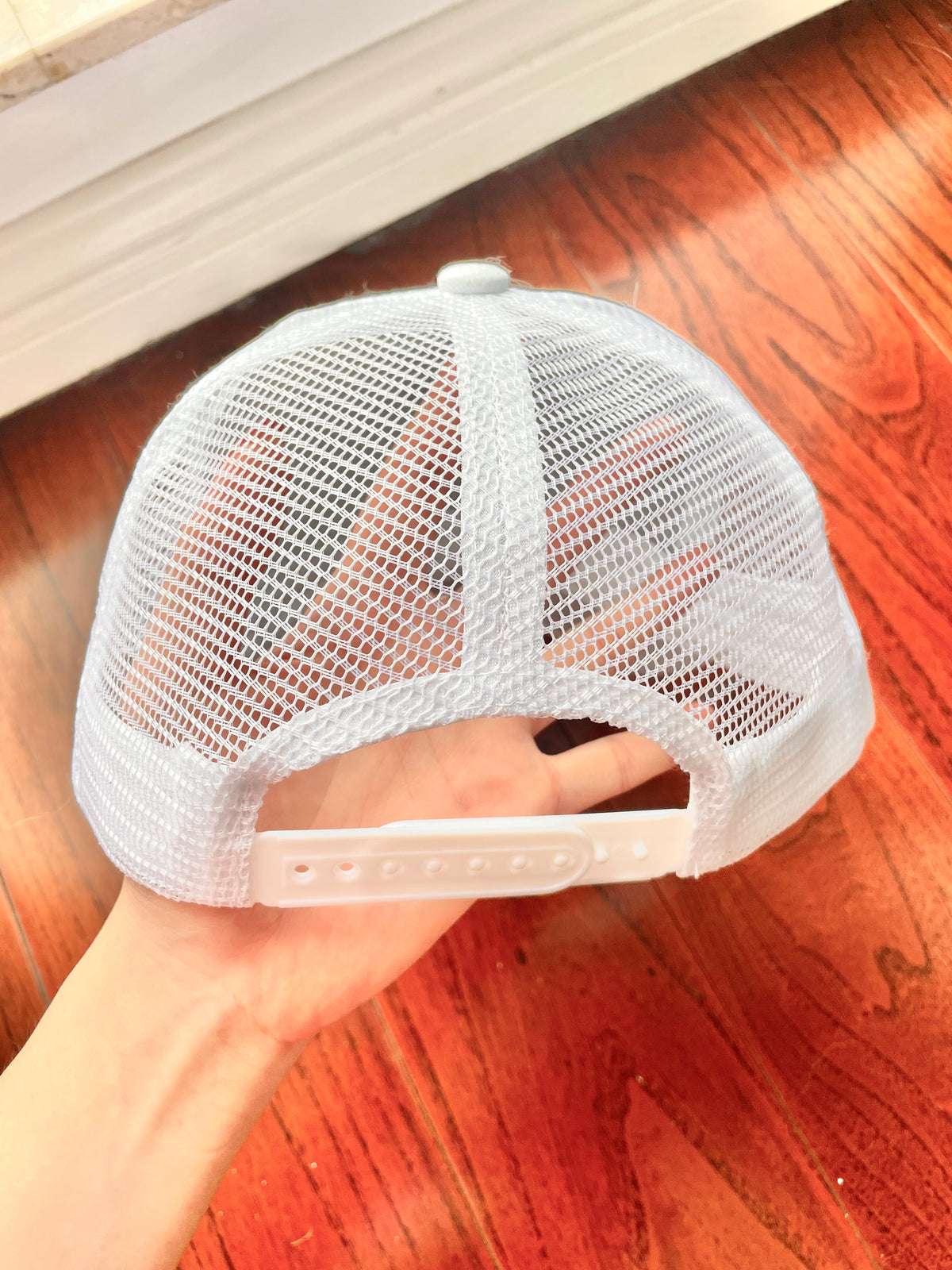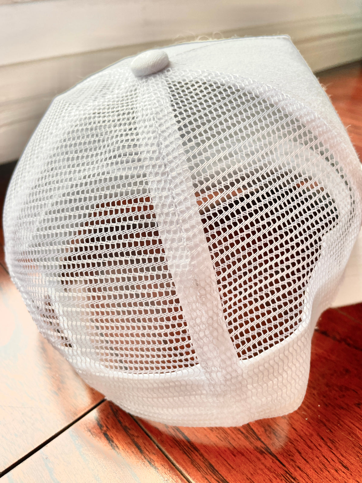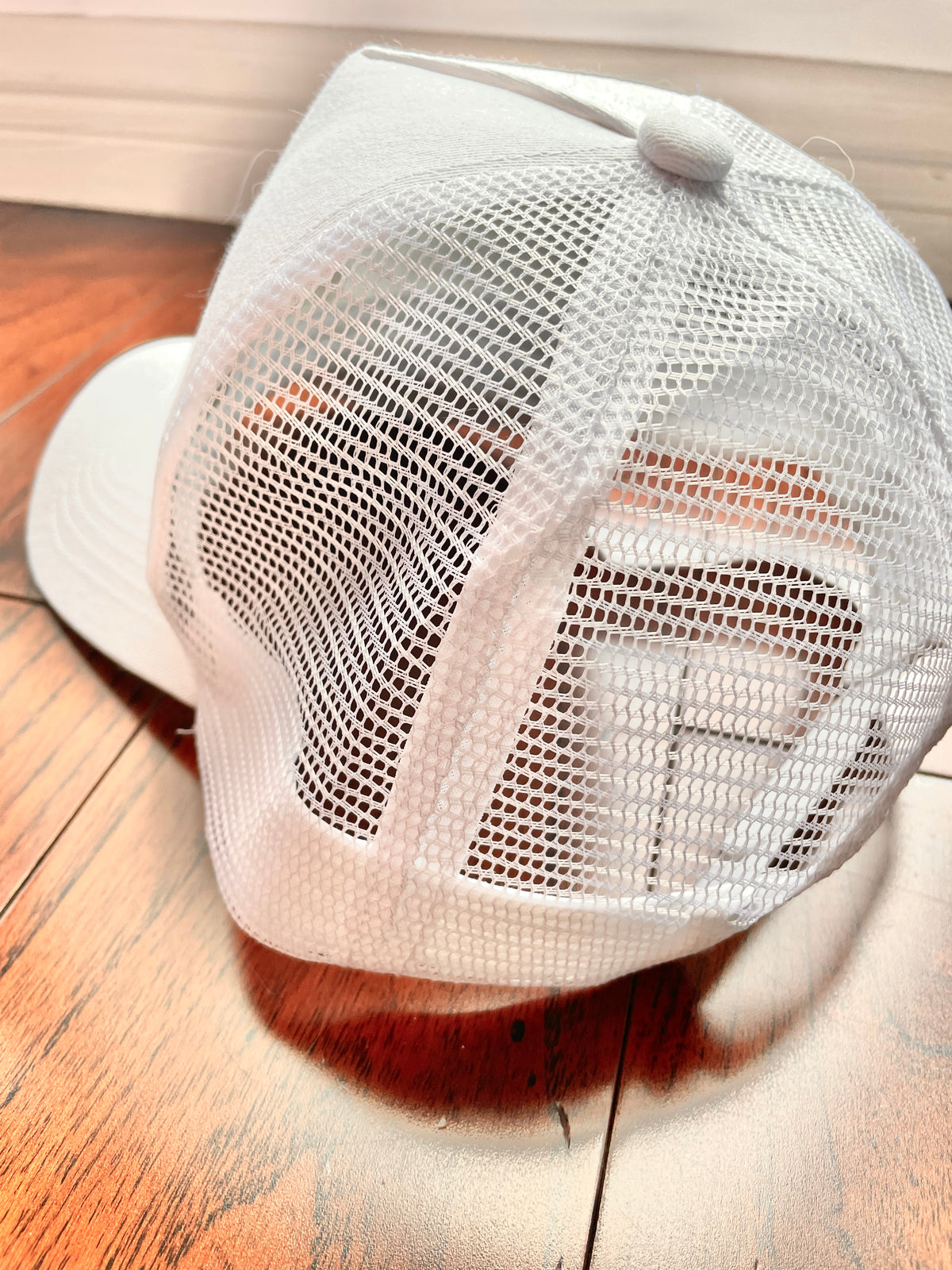 This is a classic trucker hat with embroidered eyelets and an adjustable back strap. Embellish with embroidery or print.